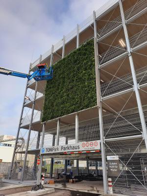 BV. Parkhaus Toni Park Augsburg 700 m² Fassadenbegrünung 3-seitig am Parkhaus